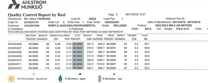 Voici le tableau détaillant les capacités de filtration du filtre de la gourde ÖKO et un résumé des tests réalisés à la demande du fabricant par des laboratoires indépendants.